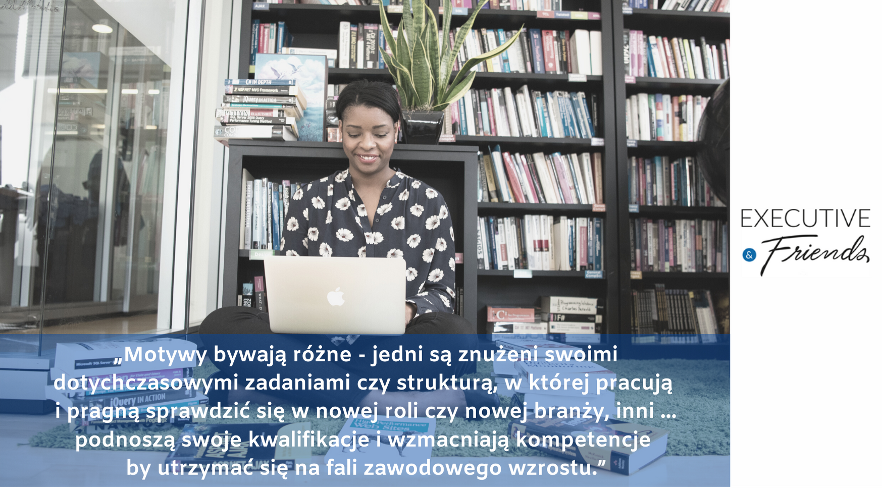 i różnych poziomów zawodowych. Wszystkich jednak łączy to samo – otwarty umysł, chęć ciągłego inwestowania w siebie oraz chęć pozyskiwania nowych kompetencji, głównie technologicznych. Motywy bywają różne – jedni są znużeni swoimi dotychczasowymi zadaniami czy strukturą, w której pracują i pragną sprawdzić się w nowej roli czy nowej branży, inni – w obawie przed utratą pracy
